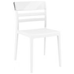 Flash stacking indoor outdoor dining chair. New addition to our hybrid chairs. Chair is made with polypropylene construction and a polycarbonate back accent. Chair legs are reinforced with fiber glass. Commercial grade chairs can be used indoors or outdoors. Chairs are maintenance free. Available in multiple color combinations. Modern minimalist design. Certified for strict European standards by CATAS Italian research institute and test laboratory.