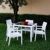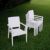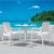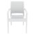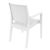 Ibiza Wickerlook resin patio dining arm chair in white. Beautiful woven-wicker-looking resin chair. Wickerlook resin is a natural looking un-woven one piece furniture technology. Wickerlook furniture is made with open weave design that resembles traditional woven wicker furniture. Unlike any other woven furniture in the market Wickerlook furniture will never unravel. No metal parts to rust, no moving parts that can break. Made for commercial durability. Stackable. Chairs are perfect for hotels and restaurants. UV treated. Hose down for cleaning. Withstands summer and winter outdoor temperatures. Made for outdoors. Certified for strict European standards by CATAS Italian research institute and test laboratory.
