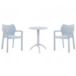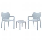 Maya silver gray resin outdoor dining chair. Made from commercial grade resin with gas injection molded legs. Features pastel colors. So elegant that it is suitable for indoors, so durable that it is used outdoors. Maya stackable resin chairs are perfect for heavy use areas. Great for outdoor spaces. Preferred by restaurants, cafes and hotels. Chairs are stackable, easy cleaning and UV resistant. Made for outdoor use. Sold in sets of 2. Price shown is for 1 chair. Color silver gray. Certified for strict European standards by CATAS Italian research institute and test laboratory.