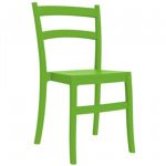 Maya tropical green resin outdoor dining chair. Made from commercial grade resin with gas injection molded legs. Features pastel colors. So elegant that it is suitable for indoors, so durable that it is used outdoors. Maya resin stacking chairs are perfect for heavy use areas. Great for outdoor spaces. Preferred by restaurants, cafes and hotels. Chairs are stackable, easy cleaning and UV resistant. Made for outdoor use. Certified for strict European standards by CATAS Italian research institute and test laboratory.