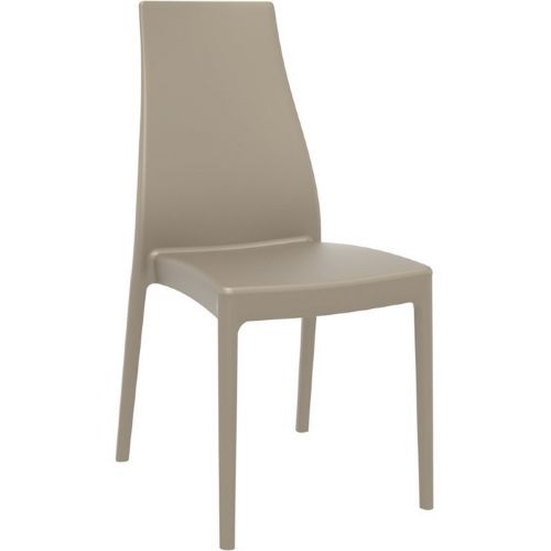 Miranda high-back outdoor dining chair. Modern and elegant design. Made from commercial grade resin with gas injection molded legs. So elegant that it is suitable for indoors, so durable that it is used outdoors. Great for outdoor spaces. Chairs are stackable, easy cleaning and UV resistant. Made for outdoor use but can be used indoors. Certified for strict European standards by CATAS Italian research institute and test laboratory.