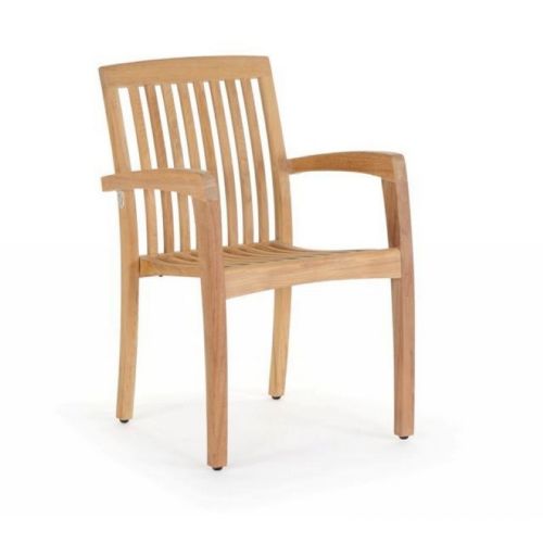 Modern teak patio dining arm chair with cushion. Made with kiln-dried, grade a teak wood. Modern and simple design. Teak wood is natural and suitable for outdoors. Requires regular teak wood maintenance. Chairs come assembled. Cushions are made of Sunbrella fabric and available in multiple colors. Seat cushions are 2 inch thick. Price includes seat cushion.