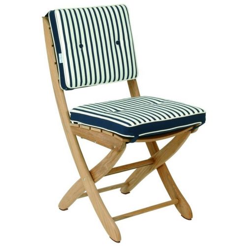 Triconfort Normandy natural teak folding side chair. Outstanding craftsmanship and quality. Elegant and comfortable. Top quality aged teak minimum age 120 years. Pores closed. Smooth natural feel. Teak wood comes from forests specially grown for production. Cushions available in 6 colors. Back and seat cushion included.