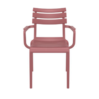 Siesta LogoParis resin outdoor arm chair is made from marine grade polypropylene. Great for outdoor spaces, patios and decks. Used by restaurants, cafes and hotels.