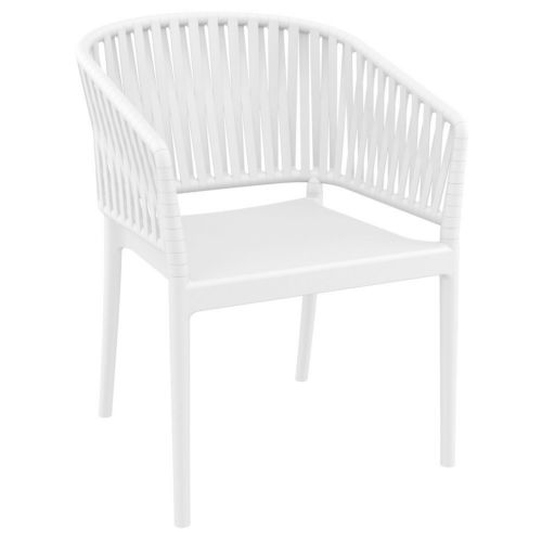 Portofino armchair features natural looking braided rope style patio furniture. Made with open weave design that will never unravel. This chair is a marvel of the newest injection molding technology available. Made for commercial durability. Perfect for hotels and restaurants. Hose down for cleaning. Withstands outdoor conditions.