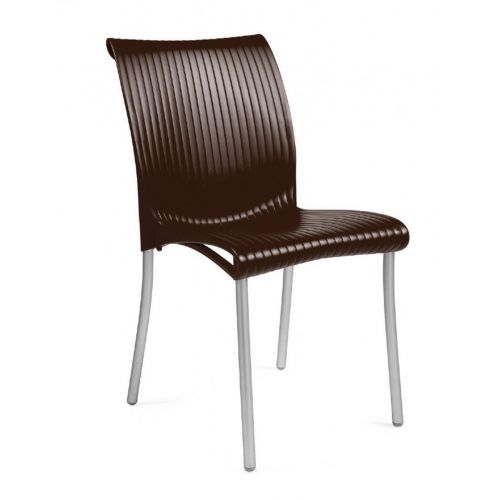 Regina antracite commercial grade stacking dining chair. Dining chair is perfect for restaurants and public areas. Stacks for easy storage. High quality marine grade resin plastic with aluminum frames. Rubber feet for non slip posture. Extremely durable and comfortable. Commercial grade.