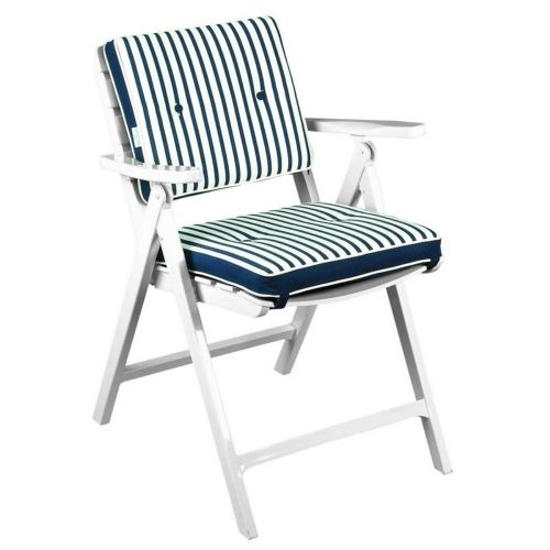 Triconfort Riviera lacquered resin folding armchair. Back adjustable to 2 positions. Top quality resin. Very elegant and comfortable. Folding outdoor chair is resistant to UV, chlorine, suntan oils, spills and stains. Cushions available in 5 colors. Cushions in Sunbrella fabric UV stabilized for color fastness. Seat and back cushion included.