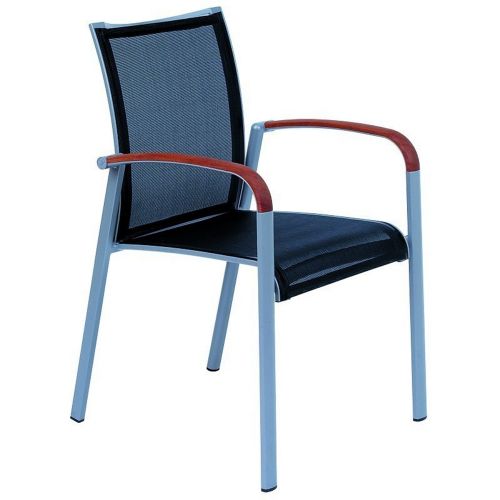 Kettal Soft aluminum dining armchair with oiled teak armrests. Aluminum tubing finished with polyester paint. Seat and back in porotex fabric. Very elegant and aesthetic. High quality. 100% outdoors resistant. Available in 2 color combinations.
