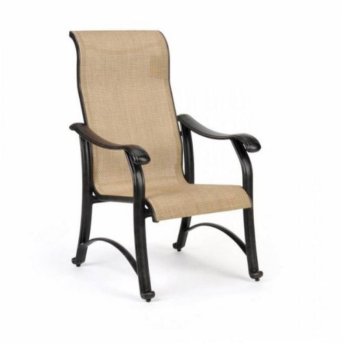 Venice cast aluminum sling outdoor dining chair. Collection features cast aluminum structure with outdoor slings. Totally resistant to outdoors. Slings are very comfortable. UV resistant.
