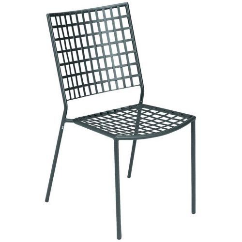 Veranda steel outdoor dining chair. Features simple squared lines. Classy modern design. Perfect for patio, garden and terrace. Steel frames are resistant to outdoor use. Steel has been traditionally used for outdoor furnishings because it is resistant, lightweight and ductile, and has timeless appeal and elegance. Commercial grade and suitable for restaurant use. Made in Italy.