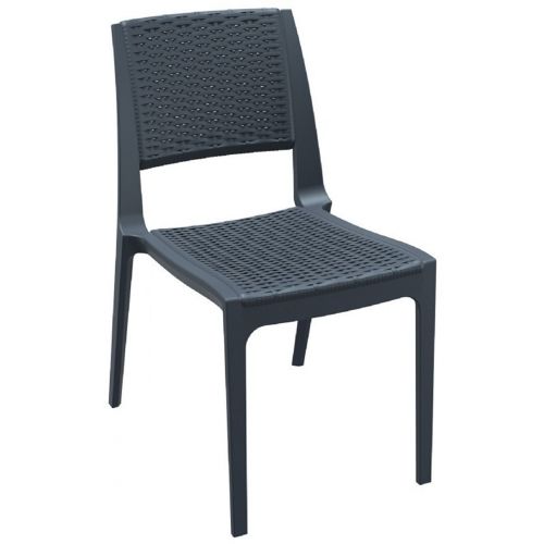 Rattan Gray Verona brown Wickerlook resin patio dining chair. Beautiful woven-wicker-looking resin dining chair. Wickerlook resin is a natural looking un-woven one piece furniture technology. Wickerlook furniture is made with open weave design that resembles traditional woven wicker furniture. Unlike any other woven furniture in the market Wickerlook furniture will never unravel. No metal parts to rust, no moving parts that can break. Made for commercial durability. Chairs are stackable. Perfect for hotels and restaurants. Resin is extremely durable for outdoors. Easy cleaning. Just hose down with water. UV treated and won't fade. Certified for strict European standards by CATAS Italian research institute and test laboratory.