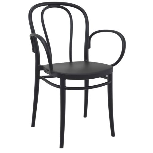 Victor XL resin indoor outdoor arm chair is made from marine grade polypropylene. Great for outdoor spaces, patios and decks. Used by restaurants, cafes and hotels.