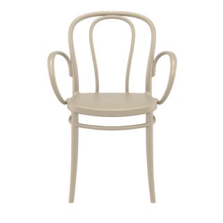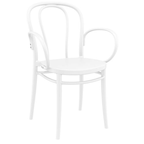 Victor XL resin indoor outdoor arm chair is made from marine grade polypropylene. Great for outdoor spaces, patios and decks. Used by restaurants, cafes and hotels.