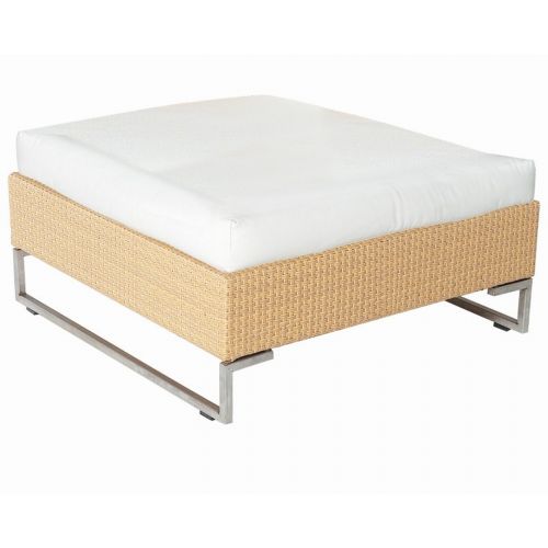 Luxor outdoor ottoman footstool. Structure in aluminum tubing, covered with synthetic wicker wowen to perfection. Synthetic wicker is similar to natural fibre but totally resistant to outdoors. Cushions available in Sunbrella natural.