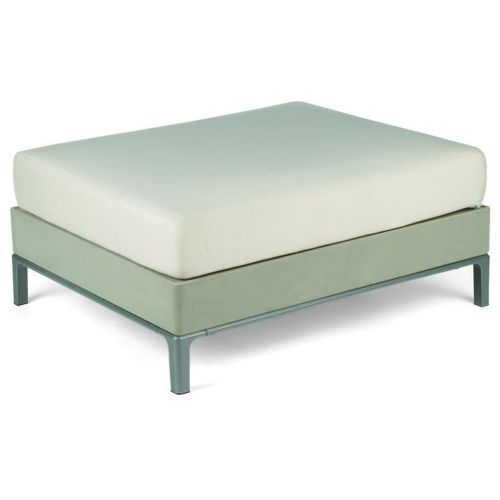 Manhattan outdoor sectional ottoman unit from Kettal. New for 2008. Manhattan collection features aluminum frames and Kettal Puur outdoor foam seating. All items can be used with or without covers. Interchangeable covers over outdoor foam changes the look of the unit and provide a cozy indoor look. Modular pieces can be arranged with sectional preferences and deep seating arrangements. Ottoman piece can be used in a sectional sofa arrangement or can be used as a chaise lounge piece. Foam is warm gray color. Footstool section comes with four inch cushions made with sunbrella fabric. Available in pure white and brown. Optional covers are available separately.