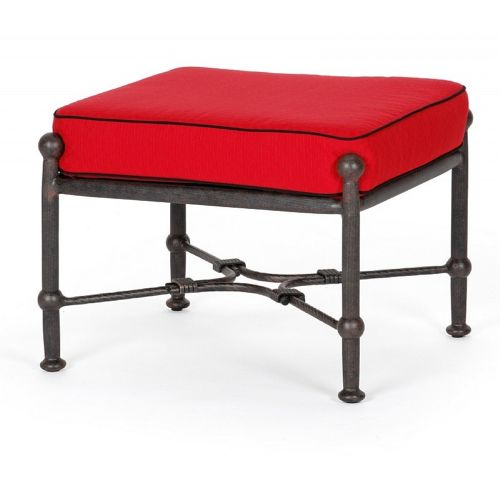 Origin cast aluminum patio club ottoman with seat cushion. Classic Mediterranean design cast aluminum furniture collection. Ottoman is great as a stool in deep seating arrangements. Strong cast and tubular frames come with four inch Sunbrella seat cushions. All corners are welded 360° for maximum strength and powder coated so it won't chip, fade, or scratch. Desert bronze color frames gives a traditional aged look. Perfect for outdoors. Cushions are made of Sunbrella fabric and available in multiple colors. Cushion covers can be machine washed. Cushion included in price.