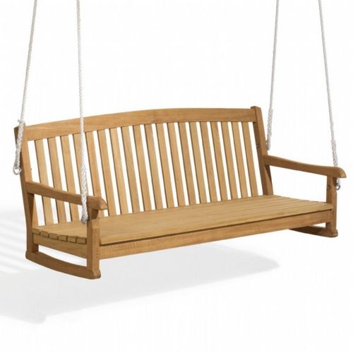 Chadwick outdoor swing bench from Oxford Garden. Hangs with four 11 feet rope lengths made of ⅜ inch nylon rope. Traditional design with gently arched back and deep seating. Handcrafted of shorea hard wood using mortise and tenon joinery, this swingwill last for years to come. Shorea wood is tropical hardwood comparable to teak which is very resistant to water, sun and outdoor elements.