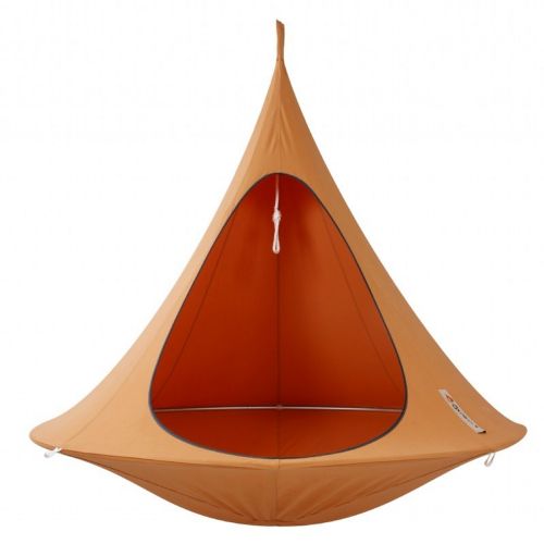 Cacoon double hanging nest is a fascinating hammock. With a diameter of 70 inches the double Cacoon hanging nest is made for couples. All hanging nests are made using fabrics developed for the high demands of the marine and camping environments. Cacoon hanging chairs and hammocks are safe if used properly. It is easy to hang one. Package includes: One hanging nest and 13 feet of hanging rope with steel carabiner (used to attach to the top of your Cacoon) and one set of eight aluminium Cacoon ring sections and one carry bag.