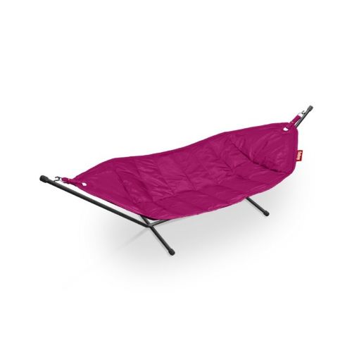 Headdemock Pink (black Rack) by Fatboy®. Forget about fancy spas, incense sticks or easy listening muzak. You haven't felt truly relaxed until you've hung out with me. My smooth fabric and sturdy support frame guarantees that nothing besides a torrential downpour will disturb us. Take one swing on me and you'll feel like you're sipping a coconut on a sunny beach in Hawaii listening to the ukulele.