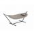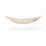 The Headdemock Superb hammock from Fatboy invites you to relax indoors or outdoors. Used on your city balcony, on your back patio, by the pool, in the park, or on the beach, you can forget the worries of everyday life and relax in the hammock. In contrast to the classic Headdemock hammock, this version features Olefin fabric, which is extremely durable as well as water and dirt repellent. In addition, the material is UV-resistant and retains its shape, color and structure, even in strong sunlight. Dirt can easily be removed with a damp cloth and mild soap. Because of its size, the Headdemock Superb hammock can be used by two or three people, with a maximum load capacity of 330 lbs. Like most hammocks, the Headdemock Sunbrella does not require a tree or a pole: A stable, powder-coated steel frame serves as support for the hammock. The Headdemock's included carrying case makes it easy to move to another location. After use, the frame can be easily disassembled and stored in a space-saving carrying bag.