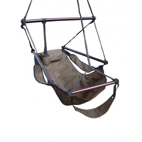Hanging Chair (Stone). The Vivere hanging chair offers total relaxation with an adjustable angle of recline that can be set up almost anywhere. It also features all-weather polyester fabric that is as comfortable as it is functional and it includes a foam pillow, foot rest, and cup holder. It packs up in a polyester carry bag which is also included. Its dowels have character (curvature and/or knots).