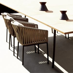 Bitta Modern Patio Furniture Collection from Kettal features superior quality and luxury. Bitta collection by designer Rodolfo Dordoni is characterised by a combination of aluminum frames, braided seats and thick and comfortable cushions. Table tops are teak and stone that complements the modern looks. Collection items are 100% outdoors resistant. Modern and aesthetic design makes this patio furniture collection a luxurious but simple choice. Kettal Bitta Collection is custom made on order. Please allow 6 weeks for delivery.