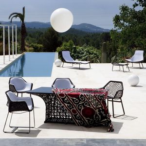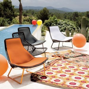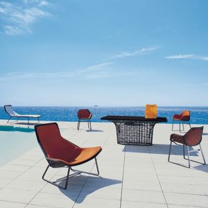 Maia Modern Outdoor Furniture is designed exclusively for Kettal by Patricia Urquiola. Features hand finished aluminum tubing. Designer outdoor furniture cushions are made from porotex mesh and durable for outdoor use. Contemporary collection offers dining sets, chairs, tables, deepseating, chaise lounges and relax club chairs. Aluminum framing available in chestnut. Cushions available in white, grey and orange. Cushions are included. Ships in 4 weeks.