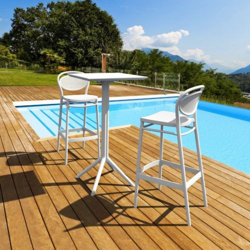 Sky Marcel Square Outdoor Bar Set with 2 Barstools White