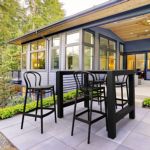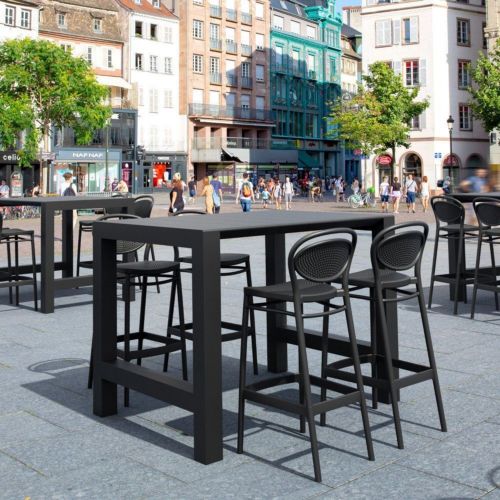 Four person bar set with one extendable bar height table and four barstools. Table has a polypropylene top. Practically extendable for accommodating more guests. Bar stools are strong and comfortable.