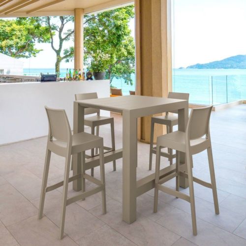 Siesta LogoFour person bar set with one extendable bar height table and four barstools in taupe. Table has a polypropylene top. Practically extendable for accommodating more guests. Bar stools are strong and comfortable.