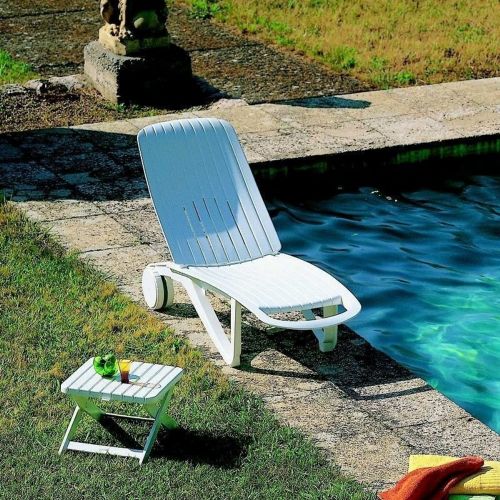 Cormoran outdoor pool furniture comfort set with two chaise lounges and two square side tables. Cormoran is our most popular chaise lounge. Back adjustable to 4 positions and folds flat. It has sleek modern design with sturdy characteristics. Massive molding construction. Resin pool furniture is extremely durable for hot sun and harsh weather conditions. Maintenance free. Stays cool to the touch under hot sun. Resin furniture set includes two chaise lounges and two square side tables. Pool Furniture Set is Made in Europe. Cushions sold separately. All cushions are custom made in USA and require 2 weeks for shipment.