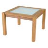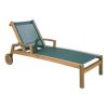 Kettal Aruba teak outdoor furniture set with two chaise lounges and a side table. Table and chaise lounges structured in top quality teak and anodized aliminum tubing. Chaise lounge seat and back in porotex fabric available in two colors. Table top in sanded glass. Aged teak with smooth feel. Modern and aesthetic. Frame resistant to outdoors. Chaise lounge is very comfortable and doesn't need cushions. Patio set of two chaise lounges and one square side table.