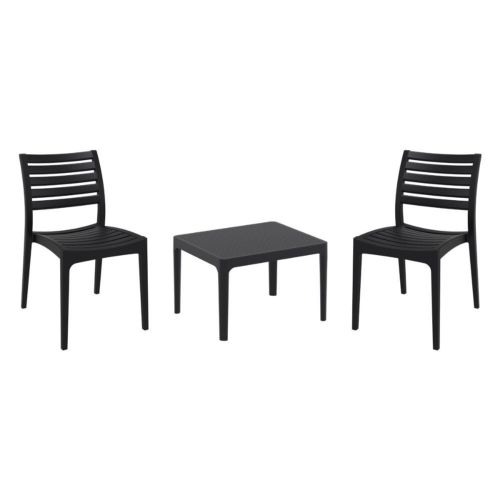 Ares chairs and Sky 24" side table 3 piece conversation set in black is stylish and comfortable set for your small outdoor space! Made from durable and weather-resistant polypropylene resin, this set is perfect for balconies, terraces, decks, rooftops and patios. Ares chairs feature a comfortable seat and backrest, making them the perfect choice for relaxing with a good book or enjoying a drink with a loved one. Two people can easily enjoy a refreshing drink together at Sky 24" side table.