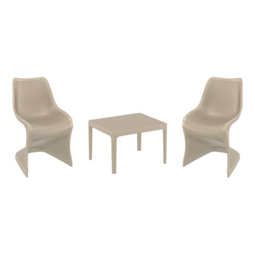 Bloom chairs and Sky 24" side table 3 piece conversation set in taupe is stylish and comfortable set for your small outdoor space! Made from durable and weather-resistant polypropylene resin, this set is perfect for balconies, terraces, decks, rooftops and patios. Bloom chairs feature a comfortable seat and backrest, making them the perfect choice for relaxing with a good book or enjoying a drink with a loved one. Two people can easily enjoy a refreshing drink together at Sky 24" side table.