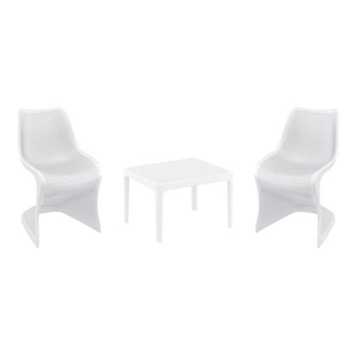 Bloom chairs and Sky 24" side table 3 piece conversation set in white is stylish and comfortable set for your small outdoor space! Made from durable and weather-resistant polypropylene resin, this set is perfect for balconies, terraces, decks, rooftops and patios. Bloom chairs feature a comfortable seat and backrest, making them the perfect choice for relaxing with a good book or enjoying a drink with a loved one. Two people can easily enjoy a refreshing drink together at Sky 24" side table.