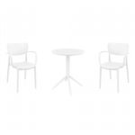 Diva arm chairs and Ocean side table 3 piece conversation set in white is stylish and comfortable set for your small outdoor space! Made from durable and weather-resistant polypropylene resin, this set is perfect for balconies, terraces, decks, rooftops and patios. Diva arm chairs feature a comfortable seat and backrest, making them the perfect choice for relaxing with a good book or enjoying a drink with a loved one. Two people can easily enjoy a refreshing drink together at Ocean side table.