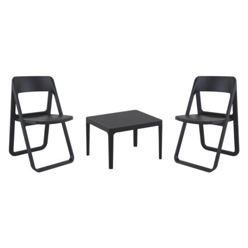 Dream folding chairs and Sky 24" side table 3 piece conversation set in black is stylish and comfortable set for your small outdoor space! Made from durable and weather-resistant polypropylene resin, this set is perfect for balconies, terraces, decks, rooftops and patios. Dream folding chairs feature a comfortable seat and backrest, making them the perfect choice for relaxing with a good book or enjoying a drink with a loved one. Two people can easily enjoy a refreshing drink together at Sky 24" side table.
