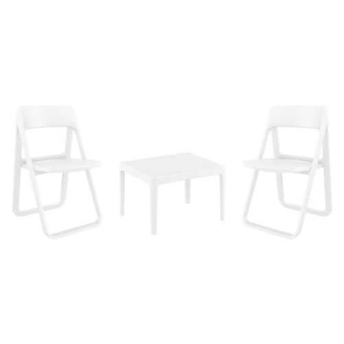 Dream folding chairs and Sky 24" side table 3 piece conversation set in white is stylish and comfortable set for your small outdoor space! Made from durable and weather-resistant polypropylene resin, this set is perfect for balconies, terraces, decks, rooftops and patios. Dream folding chairs feature a comfortable seat and backrest, making them the perfect choice for relaxing with a good book or enjoying a drink with a loved one. Two people can easily enjoy a refreshing drink together at Sky 24" side table.