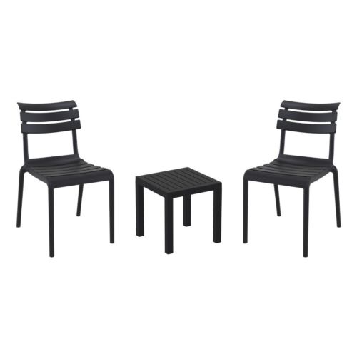 Helen chairs and Ocean side table 3 piece conversation set in black is stylish and comfortable set for your small outdoor space! Made from durable and weather-resistant polypropylene resin, this set is perfect for balconies, terraces, decks, rooftops and patios. Helen chairs feature a comfortable seat and backrest, making them the perfect choice for relaxing with a good book or enjoying a drink with a loved one. Two people can easily enjoy a refreshing drink together at Ocean side table.
