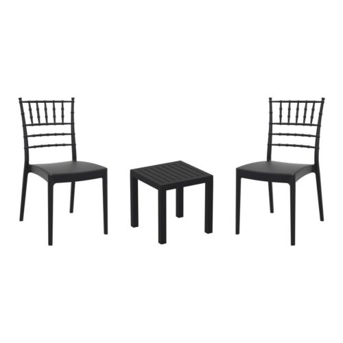 Josephine chairs and Ocean side table 3 piece conversation set in black is stylish and comfortable set for your small outdoor space! Made from durable and weather-resistant polypropylene resin, this set is perfect for balconies, terraces, decks, rooftops and patios. Josephine chairs feature a comfortable seat and backrest, making them the perfect choice for relaxing with a good book or enjoying a drink with a loved one. Two people can easily enjoy a refreshing drink together at Ocean side table.