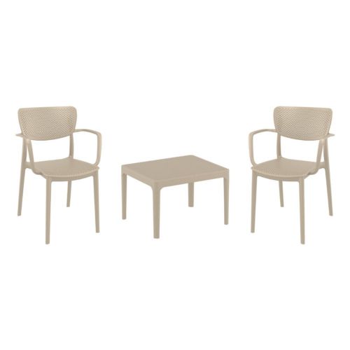 Loft arm chairs and Sky 24" side table 3 piece conversation set in taupe is stylish and comfortable set for your small outdoor space! Made from durable and weather-resistant polypropylene resin, this set is perfect for balconies, terraces, decks, rooftops and patios. Loft arm chairs feature a comfortable seat and backrest, making them the perfect choice for relaxing with a good book or enjoying a drink with a loved one. Two people can easily enjoy a refreshing drink together at Sky 24" side table.