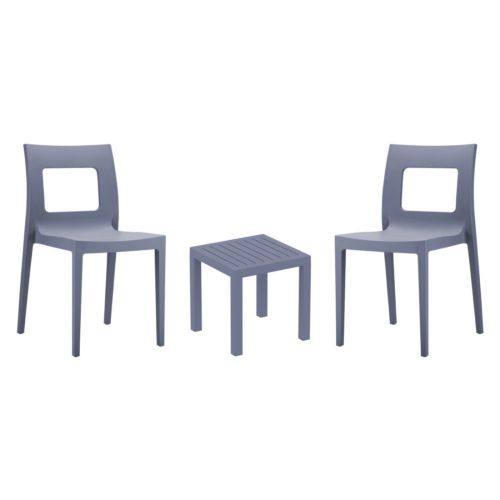 Lucca chairs and Ocean side table 3 piece conversation set in dark gray is stylish and comfortable set for your small outdoor space! Made from durable and weather-resistant polypropylene resin, this set is perfect for balconies, terraces, decks, rooftops and patios. Lucca chairs feature a comfortable seat and backrest, making them the perfect choice for relaxing with a good book or enjoying a drink with a loved one. Two people can easily enjoy a refreshing drink together at Ocean side table.