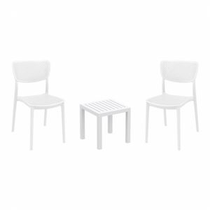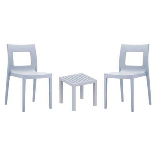 Lucca chairs and Ocean side table 3 piece conversation set in silver gray is stylish and comfortable set for your small outdoor space! Made from durable and weather-resistant polypropylene resin, this set is perfect for balconies, terraces, decks, rooftops and patios. Lucca chairs feature a comfortable seat and backrest, making them the perfect choice for relaxing with a good book or enjoying a drink with a loved one. Two people can easily enjoy a refreshing drink together at Ocean side table.