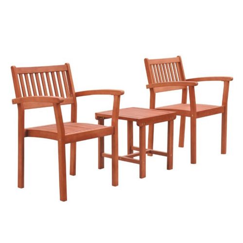 For people who love enjoying the outdoor space with a cup of coffee or tea! Combined with 2 stacking chairs and a side table tat made from 100% Eucalyptus - a very durable Hardwood, this set can stand up to all kinds of changes in the weather.