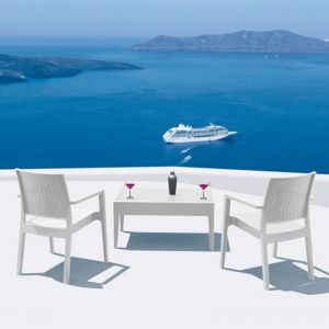 WhiteLove this set. I looked everywhere for white outdoor furniture that was modern an required no maintenance. The scale and look of this set is just what I wanted. It took two minutes to assemble and requires no tools. Love it!