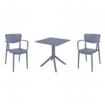 Mila arm chairs and Sky 24" side table 3 piece conversation set in dark gray is stylish and comfortable set for your small outdoor space! Made from durable and weather-resistant polypropylene resin, this set is perfect for balconies, terraces, decks, rooftops and patios. Mila arm chairs feature a comfortable seat and backrest, making them the perfect choice for relaxing with a good book or enjoying a drink with a loved one. Two people can easily enjoy a refreshing drink together at Sky 24" side table.
