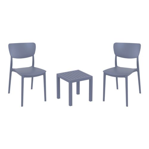 Monna chairs and Ocean side table 3 piece conversation set in dark gray is stylish and comfortable set for your small outdoor space! Made from durable and weather-resistant polypropylene resin, this set is perfect for balconies, terraces, decks, rooftops and patios. Monna chairs feature a comfortable seat and backrest, making them the perfect choice for relaxing with a good book or enjoying a drink with a loved one. Two people can easily enjoy a refreshing drink together at Ocean side table.