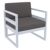 Silver Gray Mykonos lounge set with 100% acrylic charcoal cushions includes two club chairs and one coffee table. Modular contemporary design with commercial strength. Made from commercial grade polypropylene resin. Collection items are perfect for heavy use areas. Casual and modern design make it suitable for indoors and outdoors. Cushions are made with outdoor fabric with 4 inch thick high density foam. Polypropylene frame resists sun, oils, chlorine and all outdoor conditions. Certified for strict European standards by CATAS Italian research institute and test laboratory.