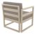 Mykonos lounge set with 100% acrylic taupe cushions includes two club chairs and one coffee table. Modular contemporary design with commercial strength. Made from commercial grade polypropylene resin. Collection items are perfect for heavy use areas. Casual and modern design make it suitable for indoors and outdoors. Cushions are made with outdoor fabric with 4 inch thick high density foam. Polypropylene frame resists sun, oils, chlorine and all outdoor conditions. Certified for strict European standards by CATAS Italian research institute and test laboratory.