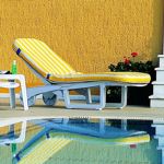 Nardi LogoOmega resort quality pool chaise lounge set. Set includes 2 chaise lounges and one square side table. Sling chaise is perfect for pools and beach areas. Sling back is very comfortable and no need for cushions. Used by five star resorts around the world. Back adjustable to 4 positions and folds flat for more comfortable sun bathing. Wheels make it easy to move around. Stacks for easy storage. High quality marine grade sling dries quick and doesn't stick to bare skin. Made of marine grade resin. Extremely durable and comfortable. Commercial grade. Side table has antiskid pads.